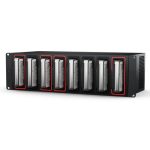 Blackmagic Cloud Backup 8 is a large 8-bay hard disk dock lets you back up large media files to low cost computer hard disks over a 10G Ethernet network. You can also sync files globally using Blackmagic Cloud, plus view all storage, connection and sync activity in real time on a display connected to the HDMI monitor port. Blackmagic Cloud Backup 8 includes 4 x 10G Ethernet for network sharing, an Ethernet over USB-C port and an internal power supply in an elegant rack mount design making it ideal for installing in a studio alongside other network equipment.