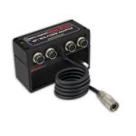 The NPU adaptors, compatible with Hawk-Woods NP1 Battery Range, have been designed to be used with the battery standing on its end with the adaptor on top. This allows for easy access to the two featured switches and LED indicator. The NPU has fully regulated outputs and a voltage selector switch that allows the user to choose between 9 or 12 volts, depending on the specific equipment being powered. The NPU-SQN4S model comes with four switched Hirose sockets and a Hirose(SQN) flying lead.