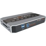 It features an HDMI, DVI, NTSC/PAL input, line level stereo analogue input, line level stereo analogue output, internal USB 3.0 hub with 2x USB 3.0 ports for expansion purposes and USB 3.0 connector for the host.