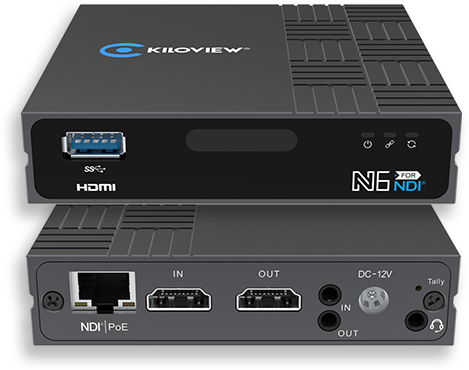 Kiloview N6 HDMI/NDI converter is a bi-directional converter that supports HDMI input (encoder) to both NDI and NDI|HX with loop through for view on monitor, or HDMI video output (decoder) from NDI and NDI|HX. This is the first NDI converter based on NDI SDK 5.0 which can handle both NDI and NDI|HX, encoding and decoding at the same time.