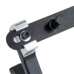 Constructed from solid black painted steel and rubberized aluminum hook, the docking bracket is designed for operator to place the ready rig vest effortless. The 16mm (5/8”) baby stud is weld on the back of steel plate allows to perfect insert into the super convi clamp (KCP-700) and to mount the bracket easily on the stands. Both hooks are able to be moved with the allen key #6 to adjust the pitch for the movcam vest as well.