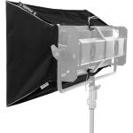 The DoPchoice SNAPBAG softbox for Litepanels Gemini 2×1 Soft RGBWW LED Panel creates a larger area of soft, flattering light with a manageable beam angle to control light spill. The softbox attaches directly to the front of two Litepanels Gemini 2×1 Soft RGBWW LED Panels that have been mounted together with the Horizontal Array (side-by-side). As an additional convenience, it easily folds away for storage and transportation.