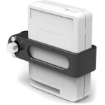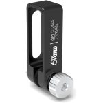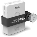 Tentacle Sync E Clamp attaches to an ARRI 1/4-20 with locating pins adjacent using a captive thumbscrew. The clamp can be configured in several ways depending on the desired position, and the locating pins can be removed if needed.