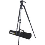 The tripod itself is made of durable black anodised alloy tubing, ensuring long-lasting use. It also comes with an above ground spreader and rubber feet, making it suitable for use on any type of terrain. The system also includes a 1-stage tripod bag for easy transportation and storage.