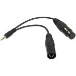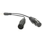 Nanlite DMX Adapter Cable with 3.5mm Connector (p/n CB-DMX-3.5C-1/2) nanlite-cb-dmx-3.5c-1-2-dmx-adapter-cable / CB-DMX-3.5C-1/2. The cable adapts 3.5mm plug to standard 5-pin dual XLR connectors(both male and female) to permit connection of fixtures to DMX console. A unique design of dual adapted connectors allows for controlling multiple fixtures in series connection to bring about more stable performance out of fixtures in DMX connection.