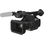 The camcorder also boasts a high-quality 15-megapixel MOS sensor and a wide-angle 24.5mm lens. It has a 20x optical zoom and i.ZOOM capabilities, as well as 5-axis hybrid O.I.S. for stable shooting. The camcorder also has triple manual rings for precise control and a built-in ND filter for adjusting light levels. It even has IR shooting capabilities for filming in dark environments.