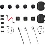 Complete accessory kit, including smart charging case, two Lavalier II microphones, cables, MagClip GO magnetic mounting clips and accessory case