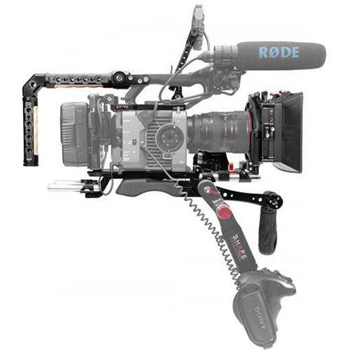 Dual 15mm Rod Battery Hinge MD2802 is designed for mounting battery on the rig more conveniently. It features standard dual 15mm rod which can be easily mounting on a railblock or a shoulder pad with dual rod clamp like the VCT-14 Shoulder Plate 1954. It should be used with a battery plate like V Mount Battery Plate 1846 and MD2801 with the battery. The angle of the hinge is adjustable and can be locked at will on your shoulder rig. In addition, there are many 1/4-20 threaded holes on the hinge for mounting other accessories.