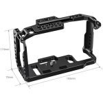 The cage features built-in NATO rails on the top and left side for attaching handles, as well as 1/4″ and 3/8″ threaded holes and ARRI locating holes for additional accessories. It also has a built-in hex spanner on the bottom plate. For users who record videos, a Samsung T5 SSD Mount 2245B is recommended, and the cage is compatible with SmallRig HDMI & USB-C Cable Clamp 2246B and SmallRig Metabones Adapter Support 2247. The cage allows for unobstructed access to the cameras battery and SD card.