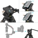 The video head can carry as much as 6kg (13.2lb). It has a newly designed snap-on quick-release plate mount, a more efficient mounting solution than traditional slide-on ones, which is DJI RS series quick-release plate and 501PL quick-release plate compatible to realize a free switch between stabilizer shooting and tripod shooting. The kit also features 1/4″-20 and 3/8″-16 threaded holes for attaching accessories like magic arms, along with a built-in flat head screw for convenient camera installation and removal. It weighs only 2.9kg (6.4 lbs).