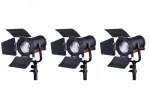 FL-C60D portable LED spot light adopts Chip-On-Board LEDs of 50,000 hours lifetime, 60W power, bi-colour, DMX adjusting focus angle, as the key light of interview light kit or field video productions.