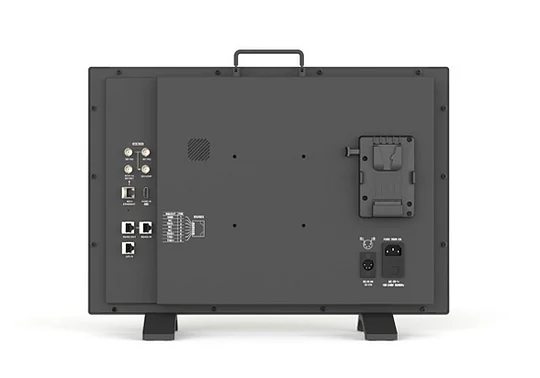 BM-215-NDI consumes 45W power, supports both AC 100-240V input and 4-pin XLR DC 12-17V input, and equipped with a V-mount battery plate on the rear panel. (Gold mount for option).