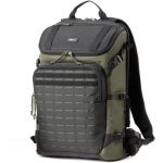 The Think Tank DarkLight Backpack 20L in Montane Green is designed for photo missions, featuring a laser-cut MOLLE panel and tactical webbing rails for precise loadout configuration. The backpack includes a removable waist belt, rain cover, laptop sleeve, handle pass-through, tripod attachment, and water bottle pocket. The back-panel access allows you to work out of the bag without removing it, providing security for your camera gear.