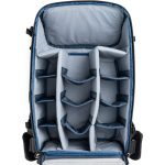 Additional features include a top opening for easy access, plush air mesh-covered harness system for comfort, front pocket for an iPad Pro and Macbook Pro, adjustable dividers for large telephoto lenses, and a luggage handle pass-through. The backpack is treated with a PFAS-free coating for maximum water resistance and includes a rain cover for heavy downpours. It meets most international and U.S. carry-on requirements, fitting under most airline seats.