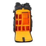 Top front access and lower rear access. Carries a 16″ laptop (laptop compartment size: 290 x 25 x 410mm). Side strap can be fitted to create top handle. No fumbling with bright coloured interior that makes finding things easy. Full sized tripod carrying system. Comfortable Air System back, harness & waist belt. Keep dry on the wettest days with rain cover. Please Note: Images are for display purposes only, contents of bag are not included.