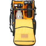A full front opening flap ensures easy top access to the camera/telephoto lens, and the top half of the compartment with the additional lenses, while the lower half of each compartment can be accessed from the back.