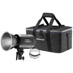The L120-B comes ready for use in the studio or on location. It includes the L120-B LED light, removable tilter bracket, AC adapter, 45° Ultra Reflector, protective COB cover, Rapid Box Switch Insert (Bowens), travel case, and a 1-year warranty with friendly US-based customer service.
