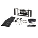 The Director’s Monitor Cage v3 is engineered to be universally compatible with any monitor up to 9 inches (measured diagonally) and attaches via top, bottom, or rear 1/4-20 mounting locations. New design provides 33% weight reduction compared to the previous model and adds unique new features like a dual direction swing away bracket, quick release neck strap, dual Teradek mounting areas, and anodized aluminium rods and handles.