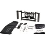 The Director’s Monitor Cage v3 is engineered to be universally compatible with any monitor up to 9 inches (measured diagonally) and attaches via top, bottom, or rear 1/4-20 mounting locations. New design provides 33% weight reduction compared to the previous model and adds unique new features like a dual direction swing away bracket, quick release neck strap, dual Teradek mounting areas, and anodized aluminium rods and handles.